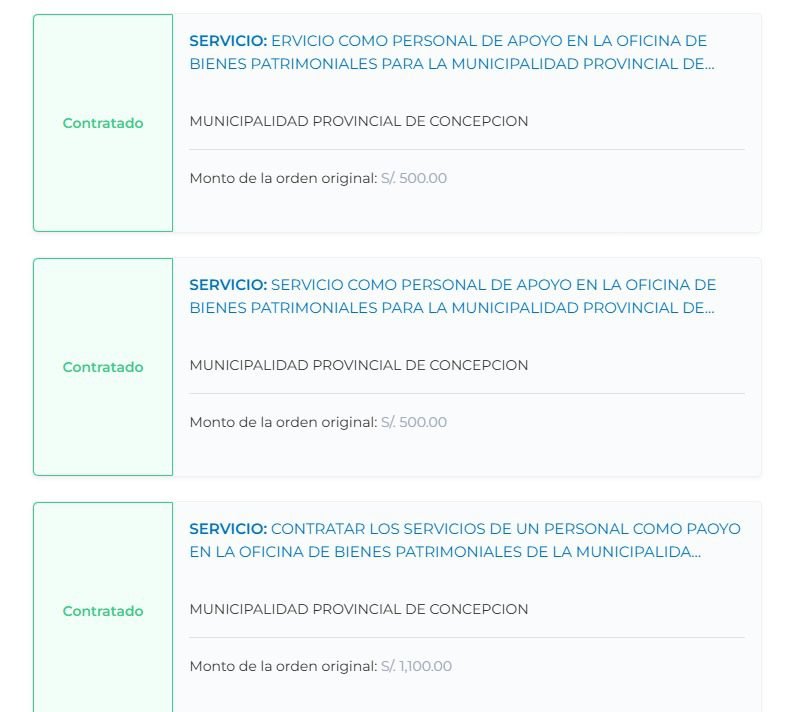 La primera contratación se dio un mes después de que Vidal asumiera el cargo, el 20 de febrero del 2023, con un sueldo de más de 1,100 soles, pese a que no contaba con estudios técnicos ni universitarios. Posteriormente, recibió dos contratos adicionales de 500 soles cada uno.